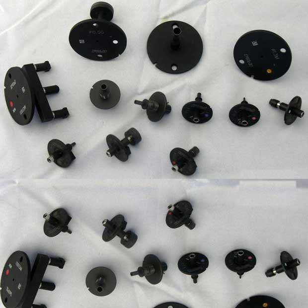 吸嘴形狀有方孔,圓通,V槽等。訂做的吸嘴,一般根據(jù)料的形狀,選取平整的吸著點,有些做成伸長的吸嘴,伸進料的凹槽平面吸取,有些根據(jù)料的邊緣,做成回字型,有些兩端用平面,中間不平,則要搭個橋。有些料有粘性,不好放料,則要在吸嘴壁開些槽,或是做成膠頭。